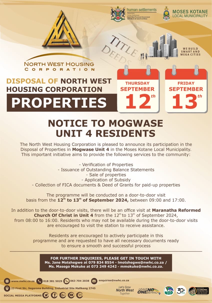 Disposal of NWHC Properties in Mogwase unit 4